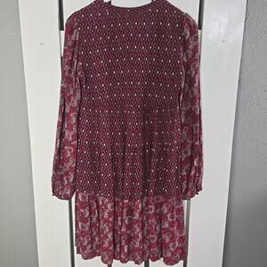 Good Condition, Maeve Anthro Amber Tiered Tunic Dress - Knee Length, Geometric Boho Long Sleeved, Purple Wine, XS