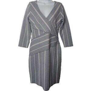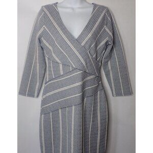 Maeve Anthropologie Amelia Blue Striped Wrap Dress M Column V neck textured