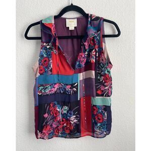 Maeve Anthropologie Anderson Patchwork Floral ruffle Tie Neck Tank Top Blouse