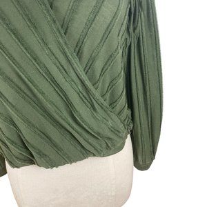 Maeve Anthropologie Audre Long Sleeve Faux Wrap Surplice Striped Green Top