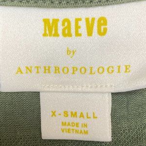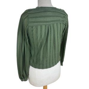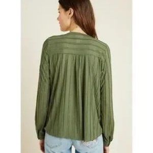 Maeve Anthropologie Audre Faux Wrap Surplice Shirt Green Striped Long Sleeve-XS