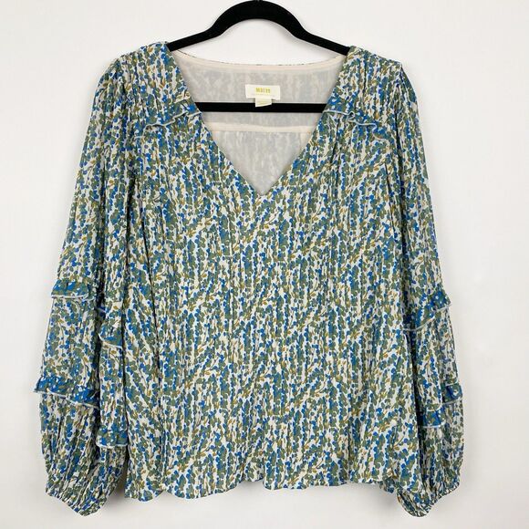 Maeve Anthropologie Avery Pleated Peasant Blouse Women M Floral V Neck Boho