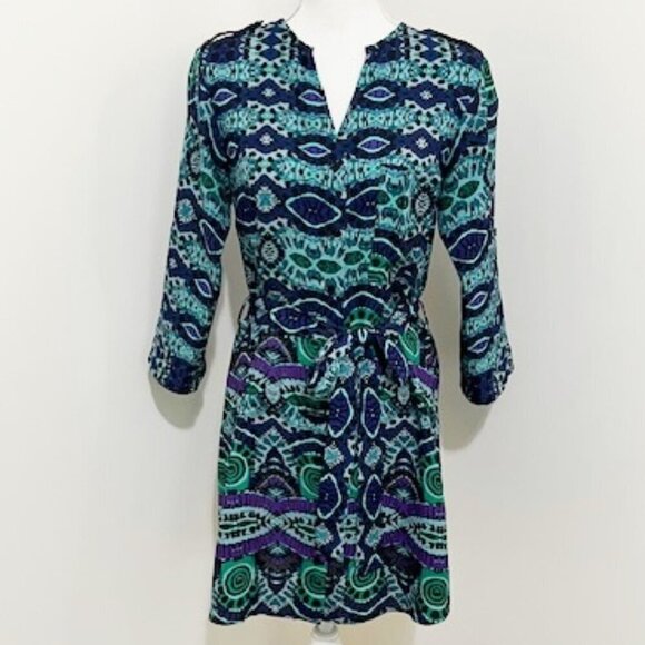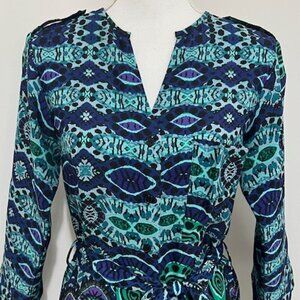 Maeve Anthropologie Belted Shirt Dress Frequencies Ikat Size XS