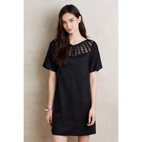 Maeve Anthropologie Black Crochet Pocketed Sheath Dress Sz XS