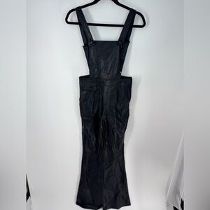 Maeve Anthropologie Black Faux Leather Retro Overalls