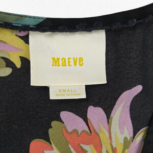 Maeve Anthropologie Black Floral V Neck Fit & Flare Semi Sheer Dress Size Small