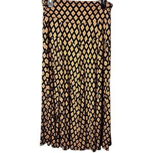 Maeve Anthropologie Black Orange Diamond Print Silky Maxi Skirt PM