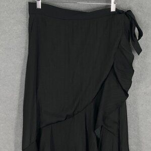 Maeve Anthropologie Black Ruffle Wrap Maxi Skirt MP Midi Party Career