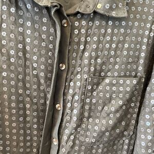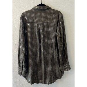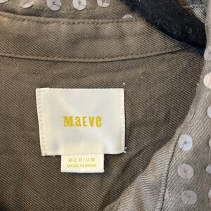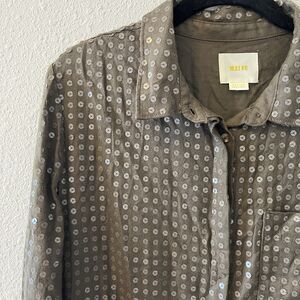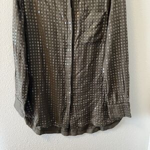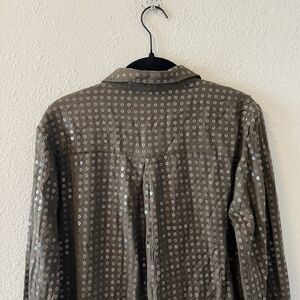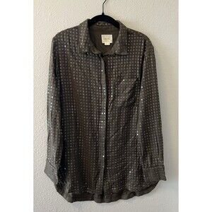 Maeve Anthropologie Blouse Size Med Sequined Olive Green Buttoned Shirt Chic