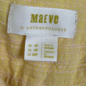 Maeve Anthropologie Blouse Women Size 0P Yellow Button Up Linen Blend
