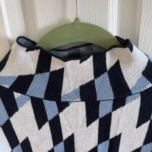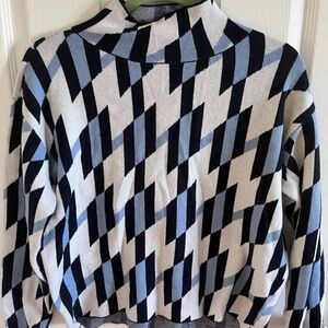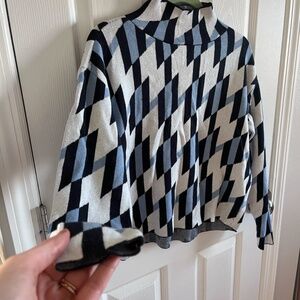 Maeve Anthropologie Blue Geometric Sweater Size XS Slightly Cropped Mock Neck