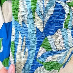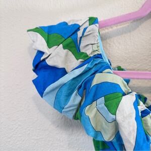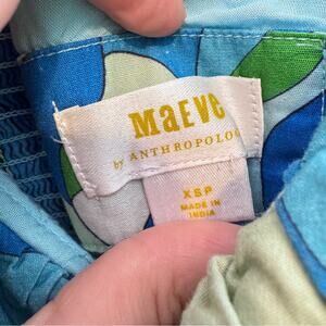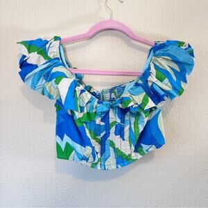 Maeve Anthropologie Blue Green Floral Crop Top Womens XSP Ruffled Pleated Shirt