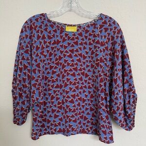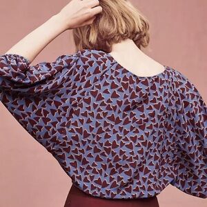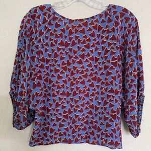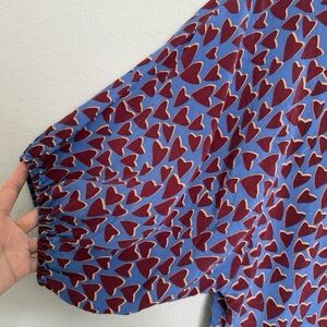 Maeve Anthropologie Blue Heart Print Silk Kimono Blouse Size XS