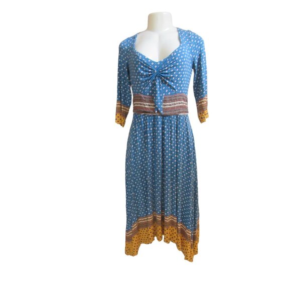 Maeve Anthropologie Blue Multi Colored Midi Rayon Blend Dress in Size M