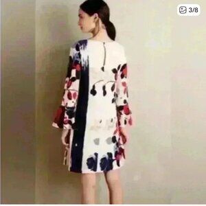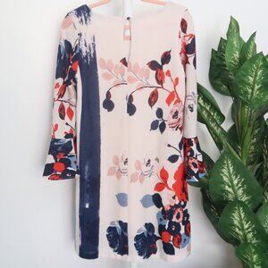 Maeve Anthropologie Blue Red Off-white Floral Print Bell-Sleeve Shift Dress S