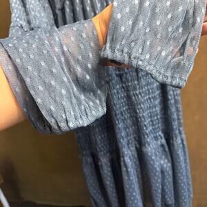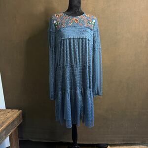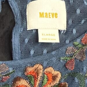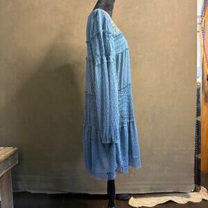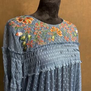 Maeve Anthropologie Blue Sheer Swiss Dot Embroidered Floral Dress XL Boho