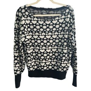 Maeve Anthropologie Boat Neck Black and White Heart Sweater