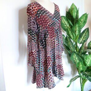 Maeve Anthropologie Boho Print Long Sleeve V-neck Mini Dress Multicolor Size M P