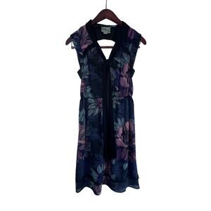 Maeve Anthropologie Bretin Black A-Line Floral Neck Tie Midi Dress Small