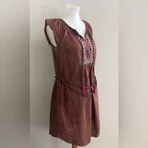 Maeve Anthropologie Brown and Pink Embellished Western Boho Style Dress Casual