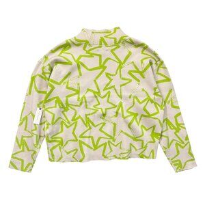 Maeve Anthropologie Carys Star Print Sweater Green XL Maximalist Twee Kidcore