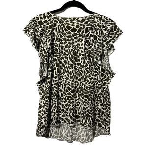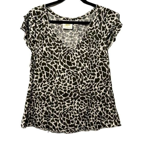 Maeve Anthropologie "Catie" Top In Olive and White Print Women's 1X Flutter Sleeve