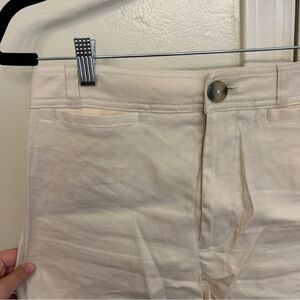 The Colette Linen Blend Shorts by Maeve at Anthropologie, size 30, in the color Antique Pearl. Inspired by the iconic Colette pants, these shorts offer the same casual polish with a tailored, high-rise fit.