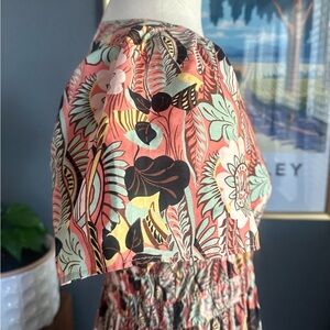 Maeve Anthropologie Coral Green Floral Puff Sleeve Ruffled Skirt Maxi Dress XS
