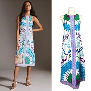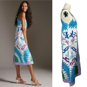 Maeve Anthropologie Deco Allover Appliqué Art Midi Dress Small Boho Cottagecore
