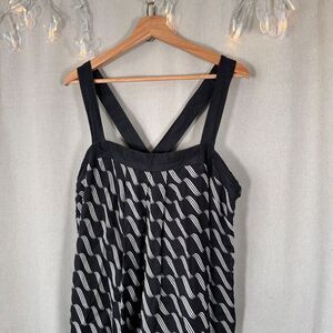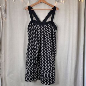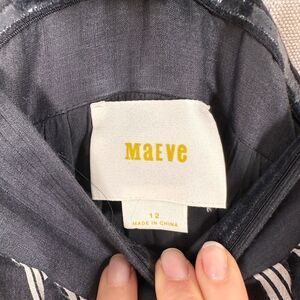 Maeve Anthropologie Dessau Black White Linen Midi Dress Crisscross Size 12