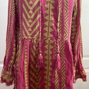 Maeve Anthropologie Dominique Tunic Dress Tassel Tie Neck Pockets Pink Size XS