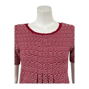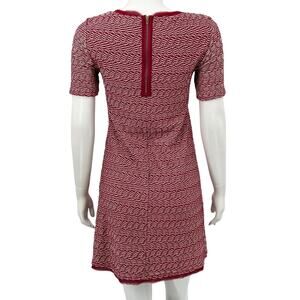 Maeve Anthropologie Womens Dora Textured Mini Dress XS Red Stretch Short Sleeves Back Zipper Lined Above Knee Length Shift A-Line Style OB462026 Casual Pleats Holiday Feminine Romantic Date Nite Swingy Preppy