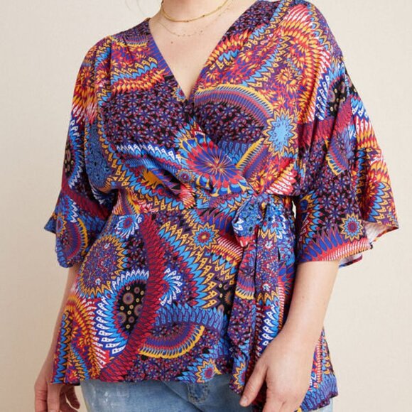 Maeve Anthropologie Elly Wrap Blouse Size 3X Kimono Tunic Asymmetrical Artsy NEW