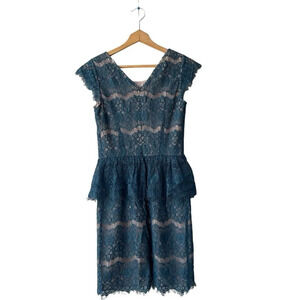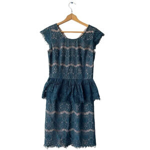 Maeve Anthropologie Elsa Sheath Dress Size XS Green Nude Lace Peplum V-back