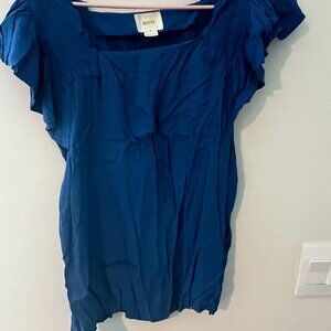 Maeve Anthropologie Epaulet Blue Ruffle Sleeve Square NeckTop Blouse size 12