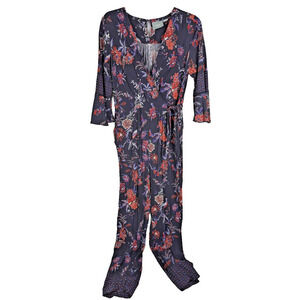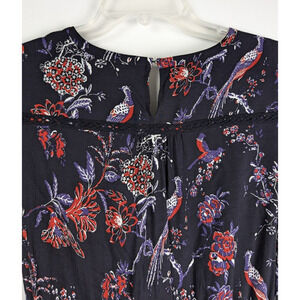 Maeve Anthropologie Espoir Women's Jumpsuit Blue Red Floral Bird Print Size 10