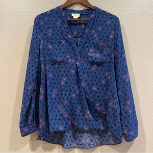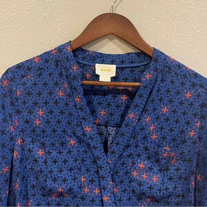 Maeve Anthropologie Eva Faux Wrap Blouse Blue Print size 6