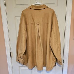 Maeve Anthropologie Faux Leather Oversized Shirt Jacket Shacket Camel Brown