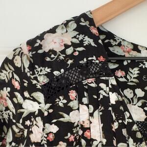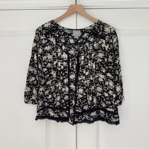 Maeve Anthropologie Floral 3/4 Button Sleeve Top Cottagecore Lace Flower Cottage