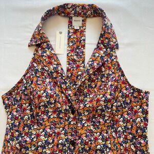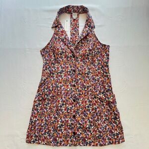 Maeve Anthropologie Floral Mini Dress Halter Neck Button Front NWT Size XL