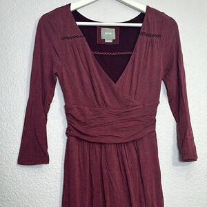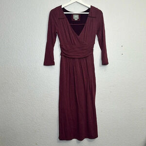 Maeve Anthropologie Galena Burgundy Jersey Knit Midi Dress Womens Size XSmall