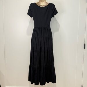 Maeve Anthropologie Gillian Tiered Maxi Dress Short Sleeve Black Small Boho