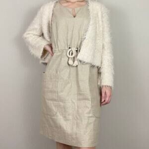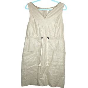 Maeve Anthropologie Gold Shimmer Straight Boxy Pencil Dress Tie Waist Size 8