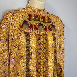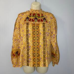 Maeve Anthropologie Goldie Embroidered Blouse Gold Yellow Floral Ruffled Sz 4