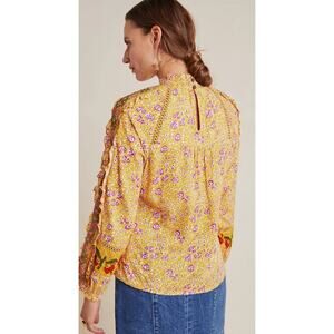 Maeve Anthropologie Goldie Embroidered Blouse Gold Yellow Floral Ruffled