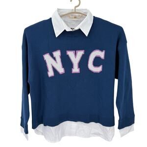 Maeve Anthropologie Graphic Twofer Sweater NYC Oversized Blue Size Large NWT