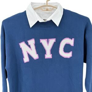 This is the navy sweater combo with the NYC graphic outlined in pink. This sweater is an effortlessly trendy piece to throw on and go. Size large new with tags. Laid flat it measures approximately 26 inches armpit to armpit and from top of the shoulder down the back 29 inches.