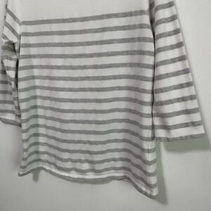 Maeve Anthropologie Gray Striped Shirt S Button Hem 3/4 Sleeve Pullover Casual