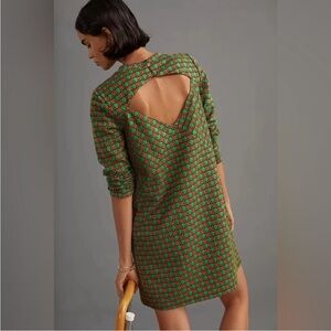 Maeve Anthropologie Green Geometric Textured Jacquard Retro 70’s Knit Dress