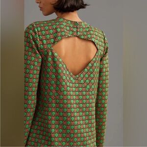 Maeve Anthropologie Green Geometric Textured Jacquard Retro 70’s Knit Dress M